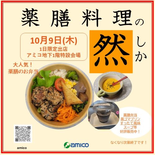 薬膳料理の然・アミコB1にてお弁当販売!!