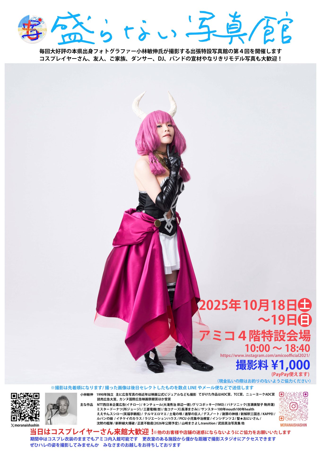第4回盛らない写真館開催!! 開催:2025年10月18日(土曜)~2025年10月19日(日曜) 第4回盛らない写真館開催決定!! 会場:アミコ東館4階特設会場 時間:10:00~18:40 撮影料:1000円 ※PayPayご利用いただけます。