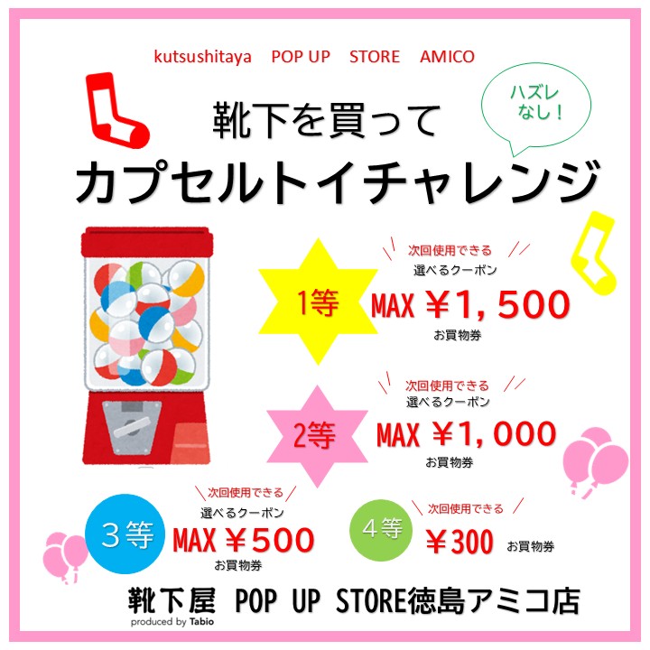 靴下屋POPUPストア靴下を買ってカプセルトイチャレンジ!
