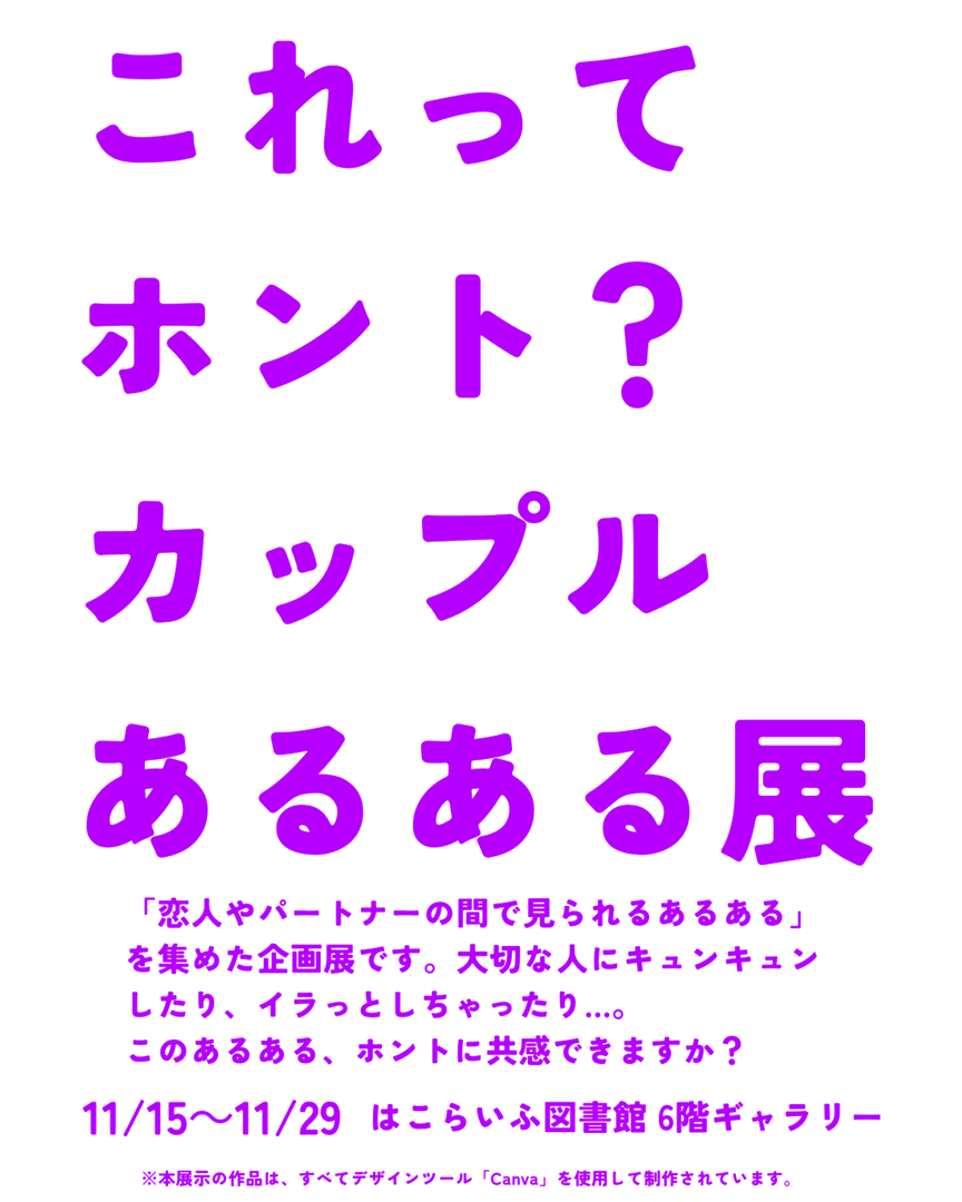 学生ならではの視点で「恋愛の違和感」や「カップルあるある」を取り上げ、気づきにつながる展示内容になっています。