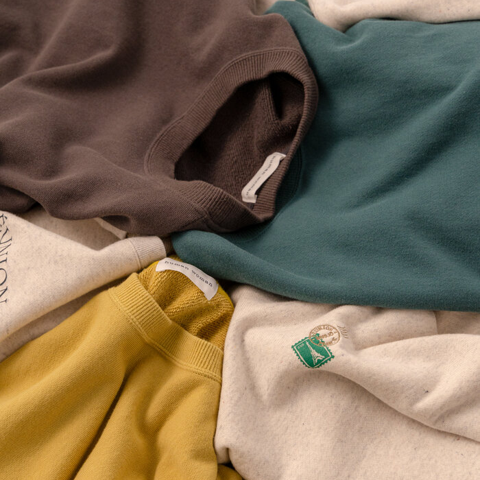 お洋服をリサイクルして繊維にブレンドしたトレーナーは、シンプルながらも遊び心のあるデザインです。