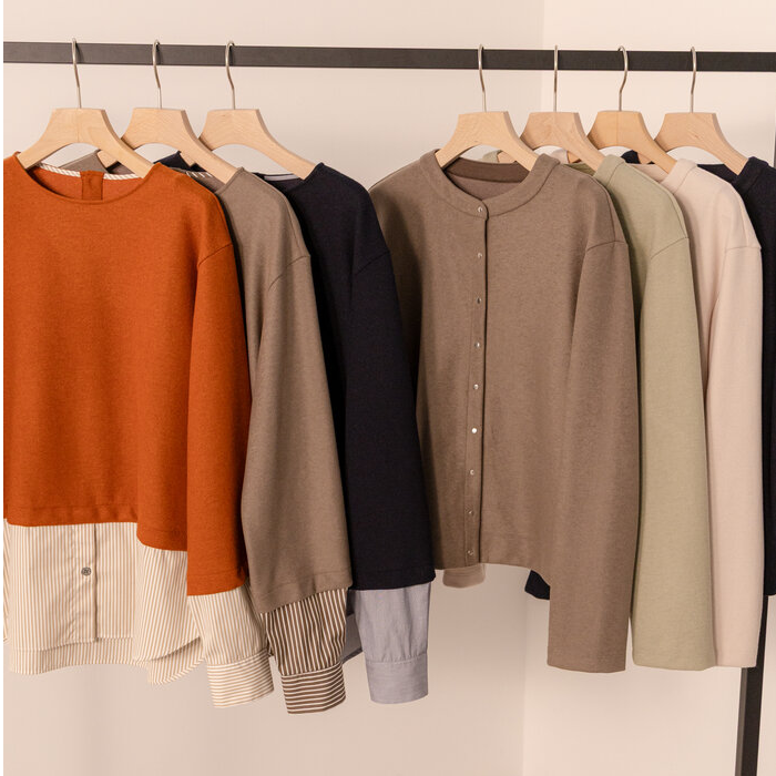着まわしのきくベーシックなアイテムや柔らかいカラーのニットなど、豊富なトップスが勢揃い。