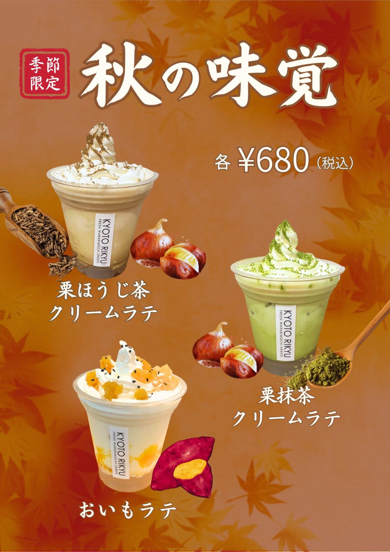 秋を感じさせる、お芋や栗が濃厚なドリンクになっております。