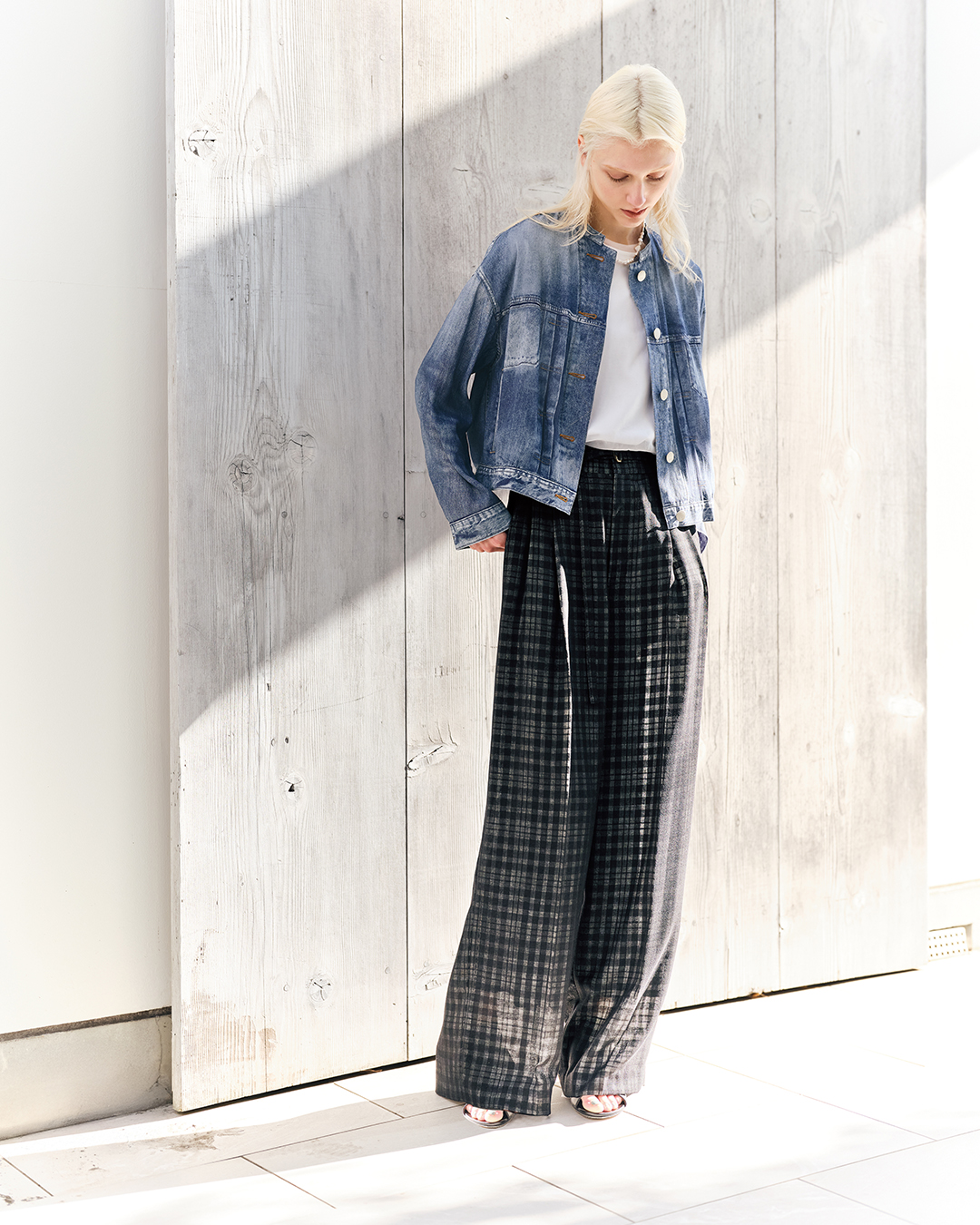 高度な接結技術によって、奥行きのある一枚のチェックを表現。
