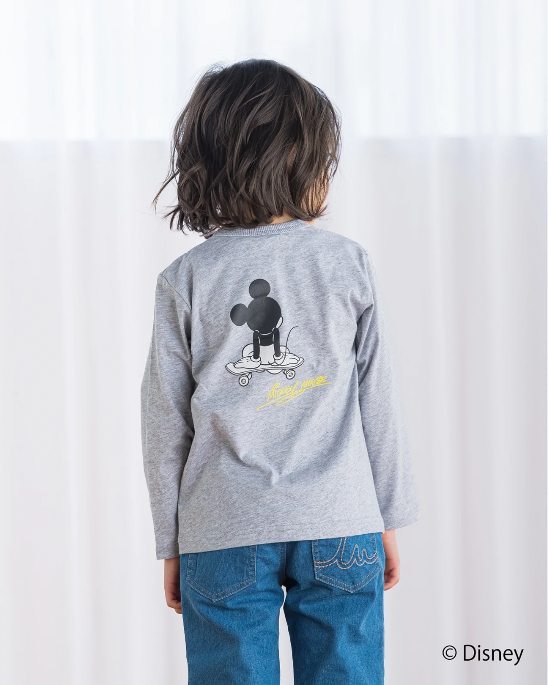 スケボーに乗ったミッキーマウスをフロントとバックにプリントした楽しいデザイン🛹💫